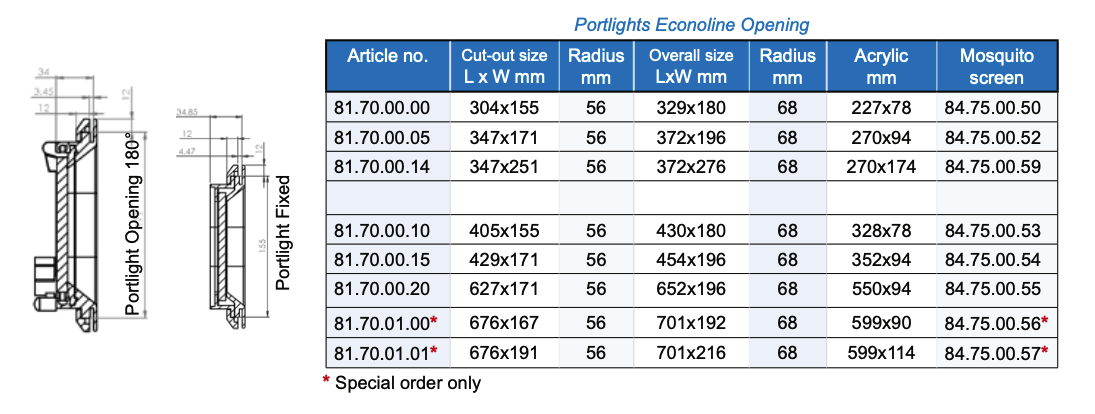Gebo Portlight Econoline 676×167 81.70.01.00 LIGHTLY USED