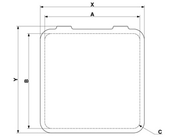 Cut-out dimensions A x B x C Radius (mm): 508 x 228 x 34,5
